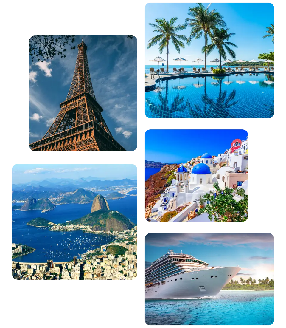 Passagens, hospedagem, passeios, ingressos e cruzeiros.